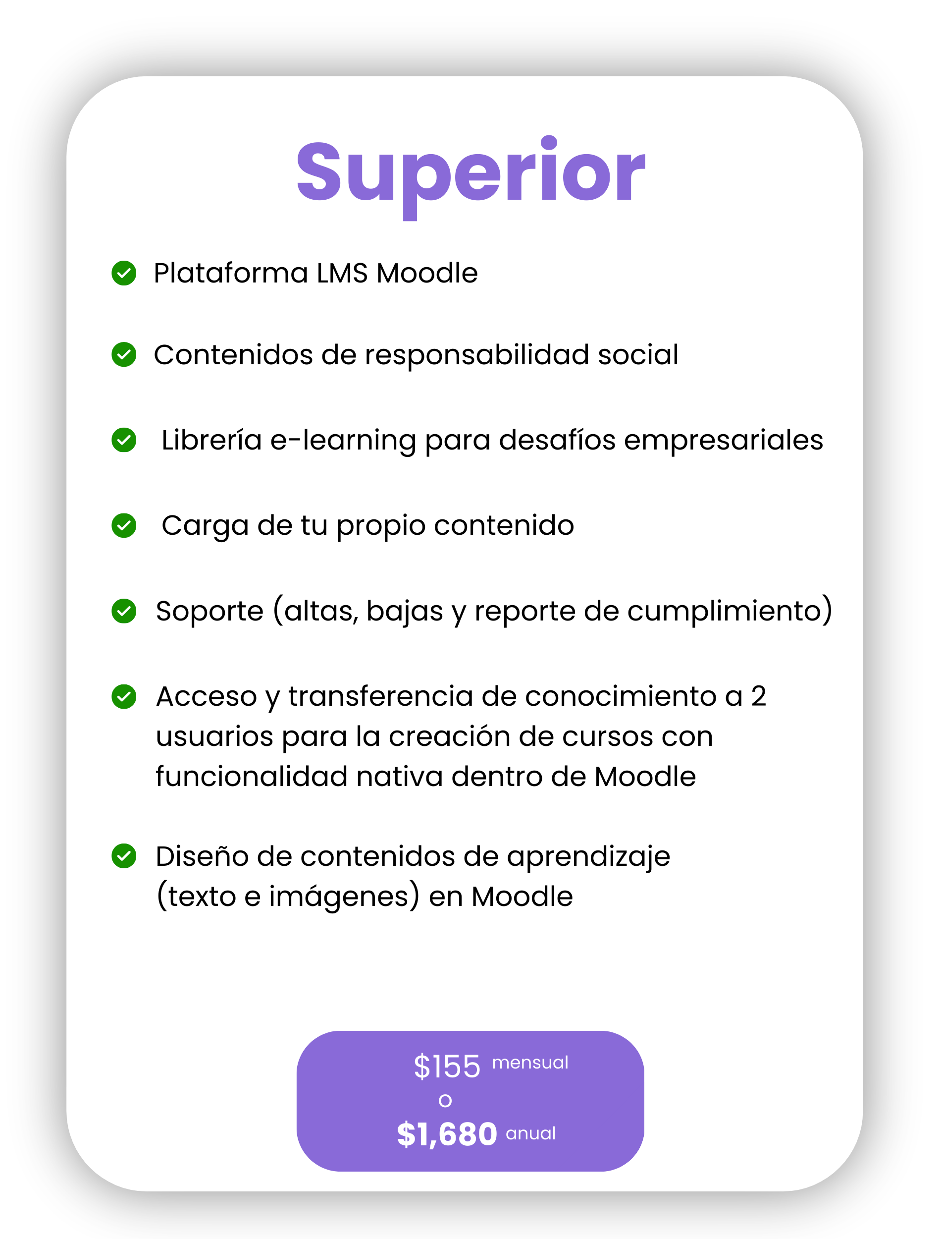 - La membresía considera la actualización continua del catálogo de contenidos